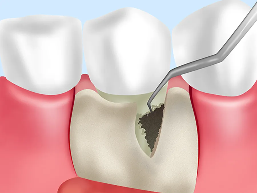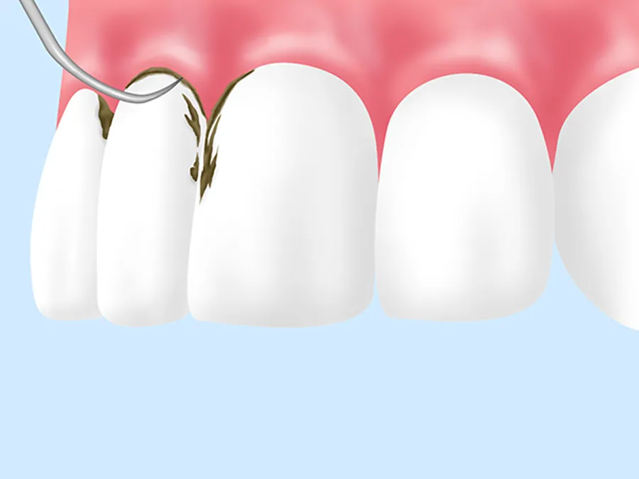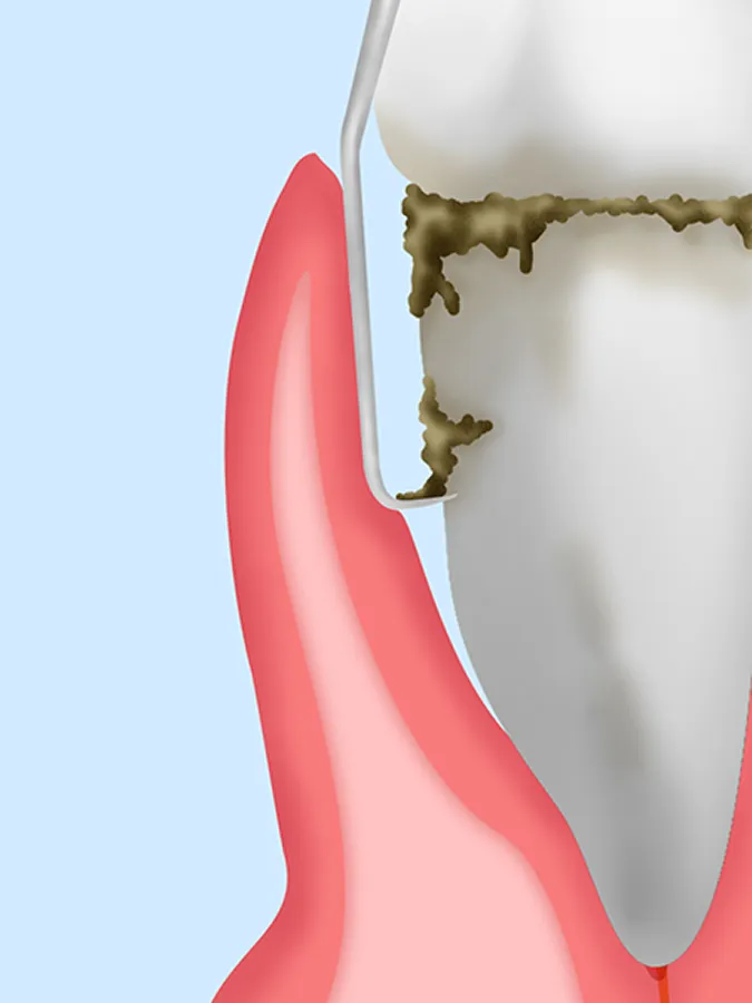歯周ポケット(歯と歯ぐきの間)にプラーク(歯垢)や歯石がたまり、歯ぐきに炎症が起きはじめた状態です。歯ぐきの腫れや、出血が起こりますが、歯科医院で専門的なクリーニングを受け、正しい歯みがきを続けることで改善が見込めます。
